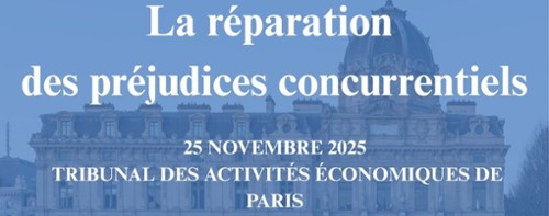 | Colloque La réparation des préjudices concurrentiels 25 novembre 2025 Le Master 2 Droit de la Concurrence et des Contrats, dirigé par Madame le professeur Muriel Chagny, a le plaisir de vous convier à sa conférence annuelle. | |